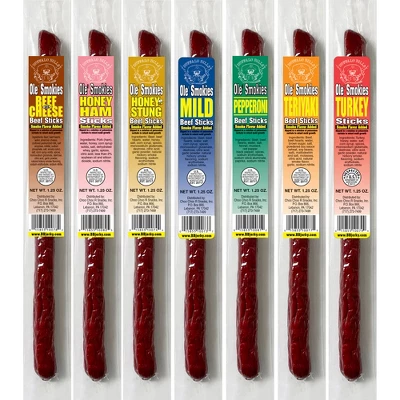 - Includes total of 30 Buffalo Bills Ole Smokies Beef Sticks in 7 assorted mild flavors