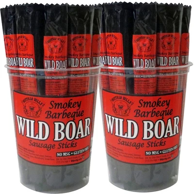 - Includes 30 total 1oz wrapped Buffalo Bills Smokey Barbecue Wild Boar Exotic Game Sticks