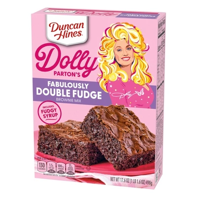 Whip up deliciously fudgy brownies with Dolly Parton’s Fabulously Double Fudge Brownie Mix from Duncan Hines. You can create Dolly’s favorite recipe, which is featured on the box, or let creativity guide you and add your own spin to this brownie baking mix. These fudge brownies include fudgy syrup and are perfect for everyday desserts, birthday treats, or special occasion snacks. Whether you are preparing a treat for after dinner, or have a hankering for incredibly fudgy brownies, this brownie mix is the ideal start to your creation.