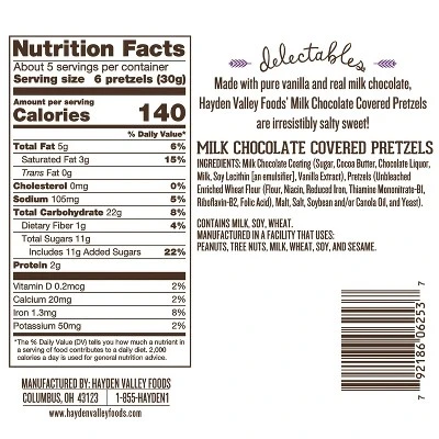 - Convenient for On-the-Go: Hayden Valley Foods covered pretzels come in a resealable bag, making them exceptionally convenient for on-the-go snacking.