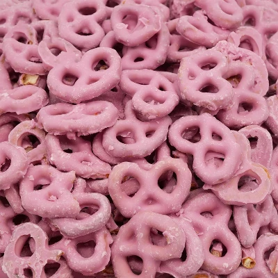 Raspberry Radiance: Elevate your senses with the enchanting sweetness of our 3-pack of Raspberry covered pretzels. Each pretzel is adorned with the lush essence of raspberries, making every moment a sweet and delightful journey.