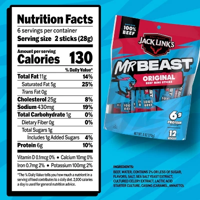 - MADE WITH 100% REAL BEEF: When it comes to protein snacks, quality matters. That’s why Jack Link’s x MrBeast Beast Sticks are made with 100% real beef – no shortcuts, no filler.