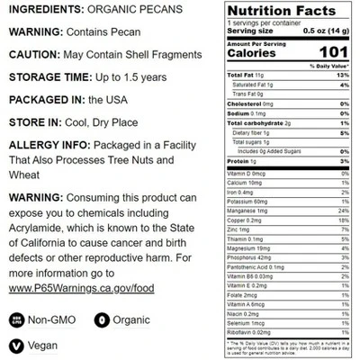 Nutrition Comparison of Organic Roasted Pecans VS Organic Raw Pecans