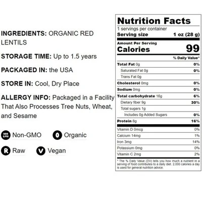 Store Red Lentils Flour in a container with an air-tight lid in a cool dark area. If stored properly, it will stay fresh for up to 1.5 years, so we highly recommend taking a look at our budget-friendly Organic Red Lentil Flour bulk bags.